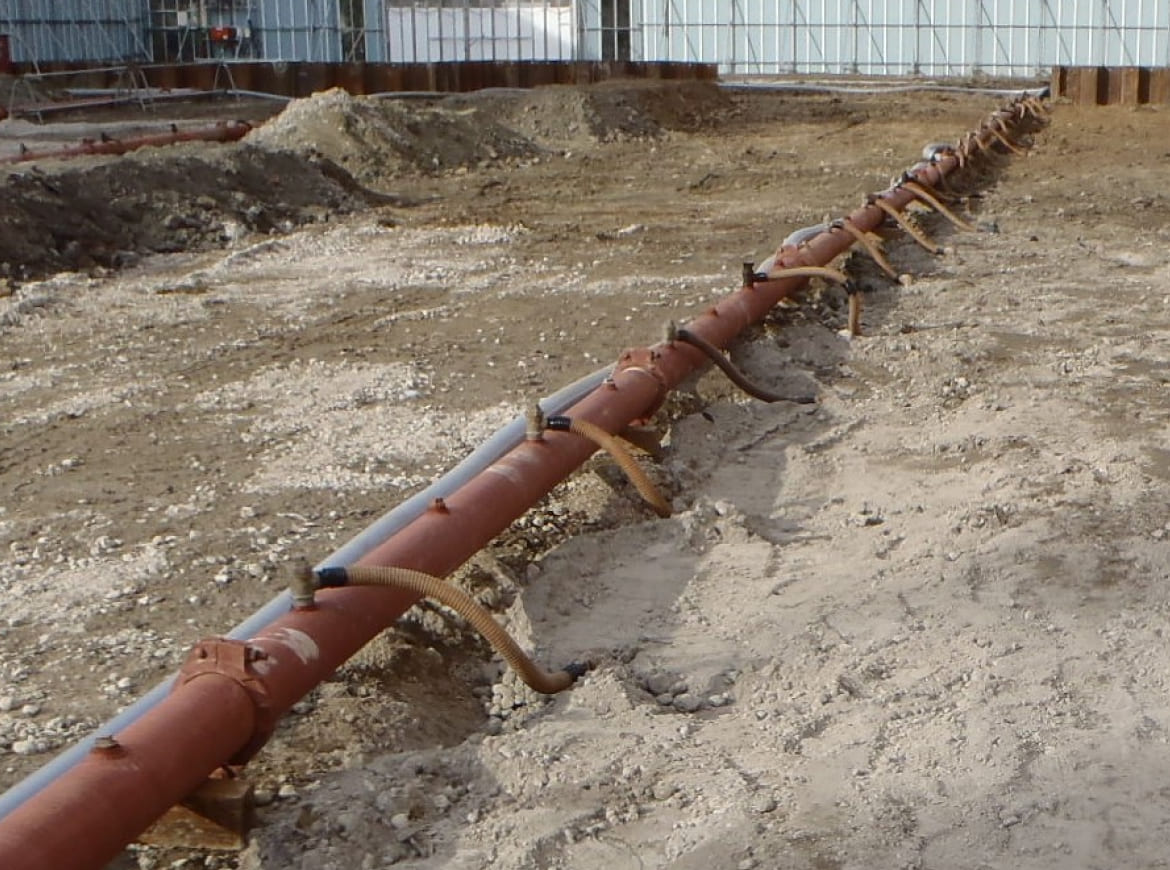 ポンプや吸水管を設置し排水することで周辺地盤の地下水位を低下させます。